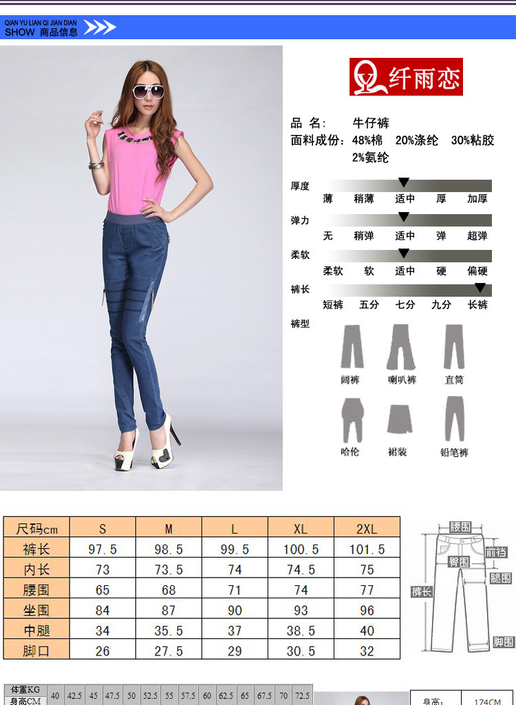 供應(yīng)纖雨戀83150纖雨戀83150拉鏈裝飾牛仔褲