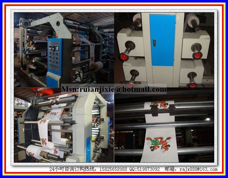 本機是用感光樹脂軟版作為版材的印刷機,俗稱“苯胺印刷機”。適合印刷聚乙烯、聚丙烯塑料袋、玻璃紙、卷筒紙等包裝材料,是食品紙包裝,超市手提袋、馬夾袋、服裝袋等包裝的理想印刷設備。
