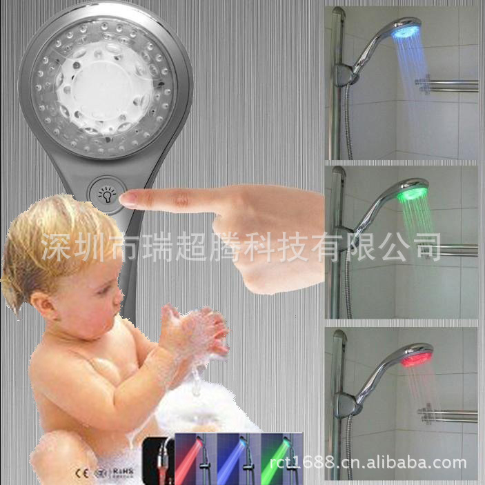 【產品名稱】:LED自發電單色/七彩/感溫變色圓頭花灑