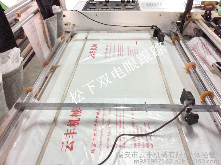 2、配置兩個伺服電機控制系統(tǒng)與電腦控制、LPC液晶屏顯示配合松下光電眼跟蹤控制,操作直觀方便,可同時生產(chǎn)兩條彩印袋。