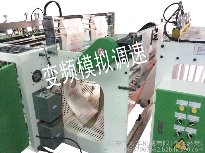 1、本機以HDPE、LDPE、生物降解材料【玉米淀粉】筒膜為原料可生產(chǎn)本色及印刷背心袋。采用電腦編程控制系統(tǒng)、伺服電機自動定長,從送料、封底、切斷、沖口輸送一次性完成。