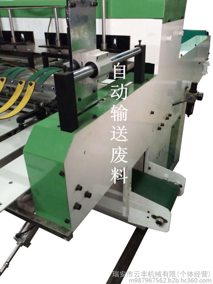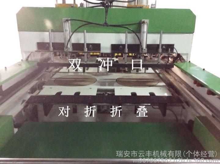 3、主機采用進口變頻器模擬調(diào)速、自動供料系統(tǒng)使制袋平穩(wěn),封切準確。自動沖床對折裝置,輸送帶送袋功能,易于收集。