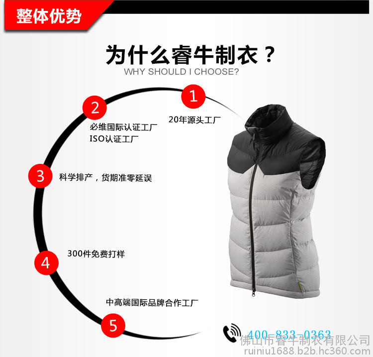 輕薄羽絨馬甲定做充棉充絨馬甲定制佛山馬甲工廠