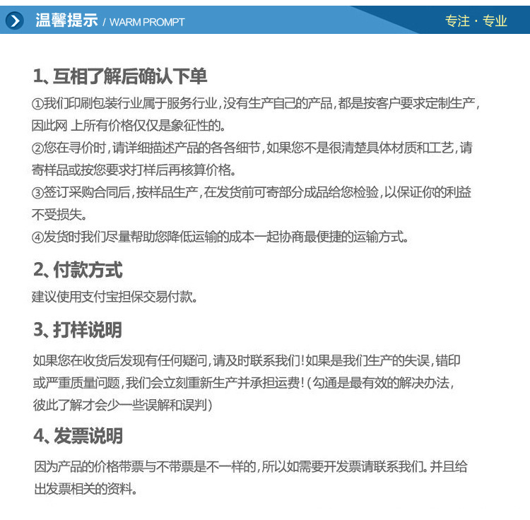 4、正式訂單:雙方確認訂單產品款式、數量、材質、單價、廣告要求及交貨時間,簽訂雙方平等合作業務合同。