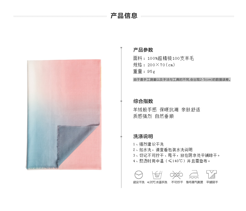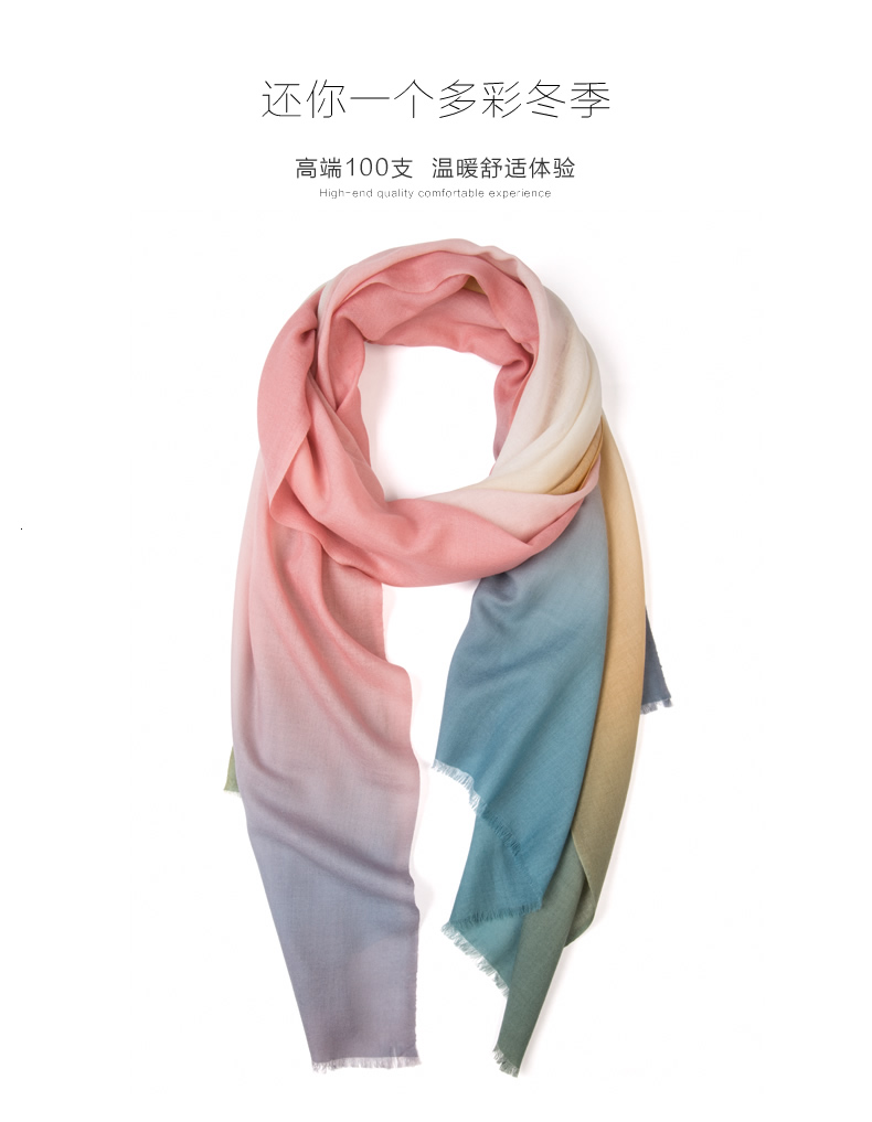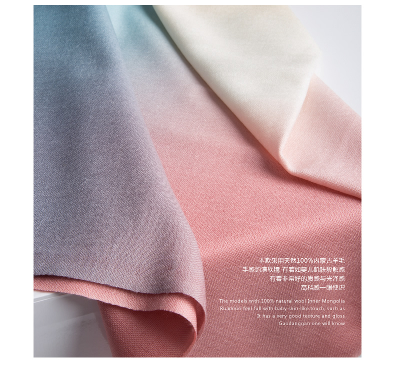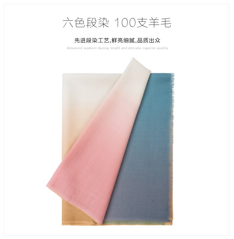 潤帛 100支羊毛圍巾 時尚韓版春秋冬季2015新款漸變