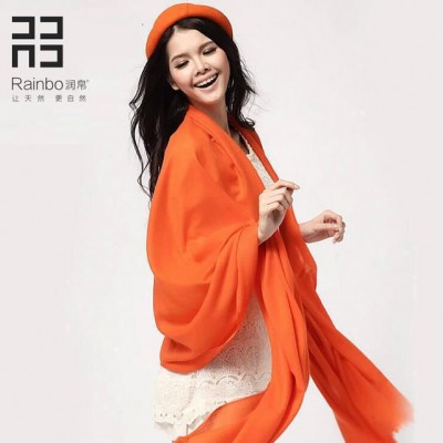 潤帛春秋冬季歐美200支戒指絨女純色超長 橘色羔羊絨圍巾披肩