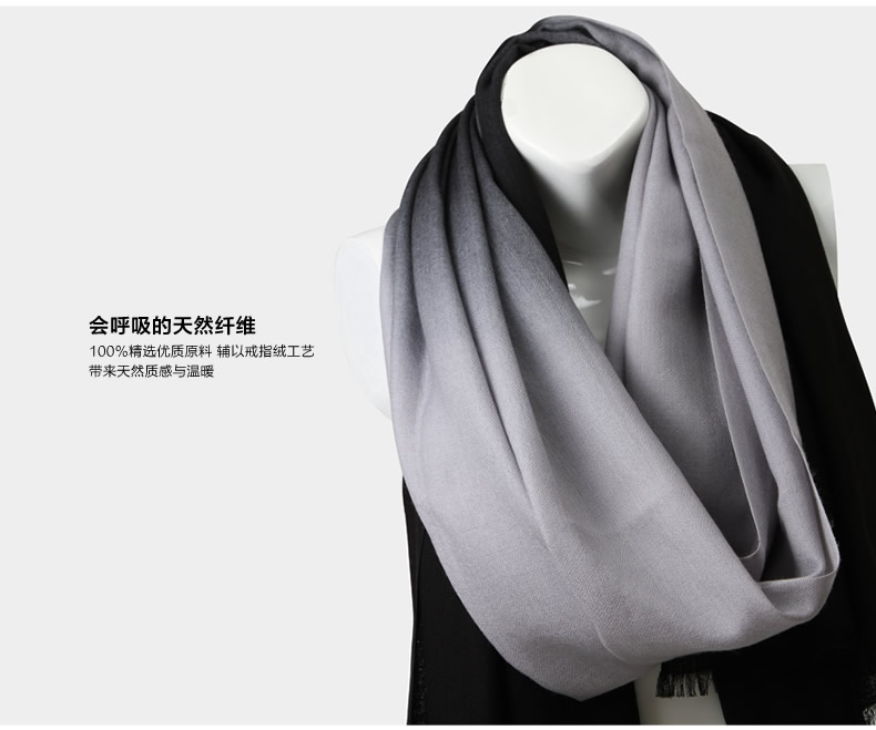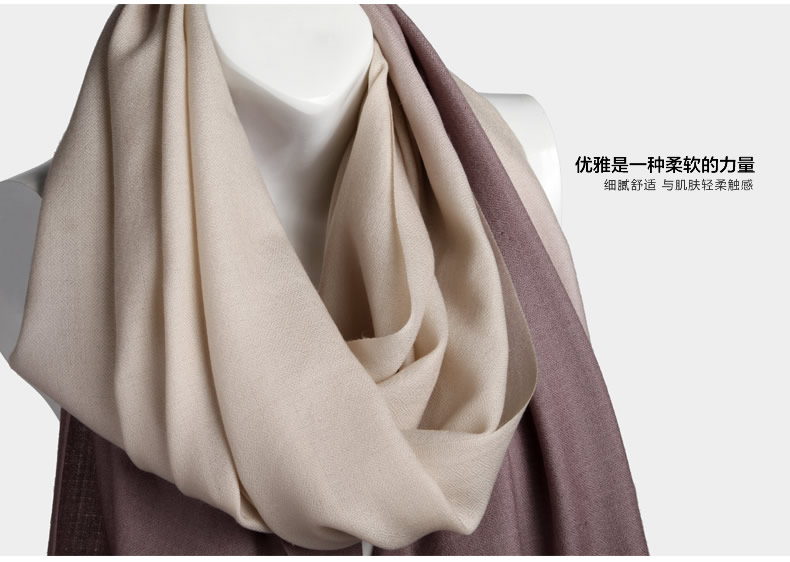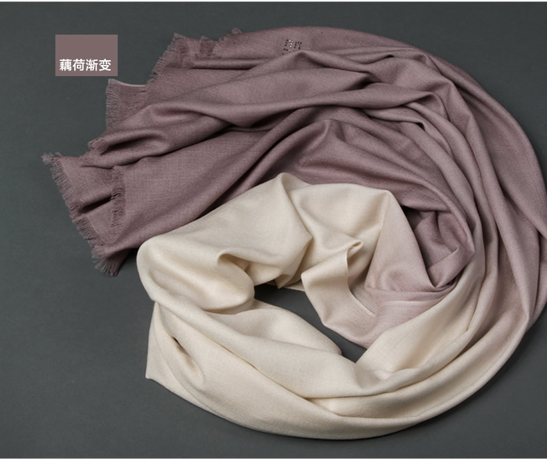 潤帛 撞色200支戒指絨女 漸變秋冬季羔羊絨圍巾披肩兩用