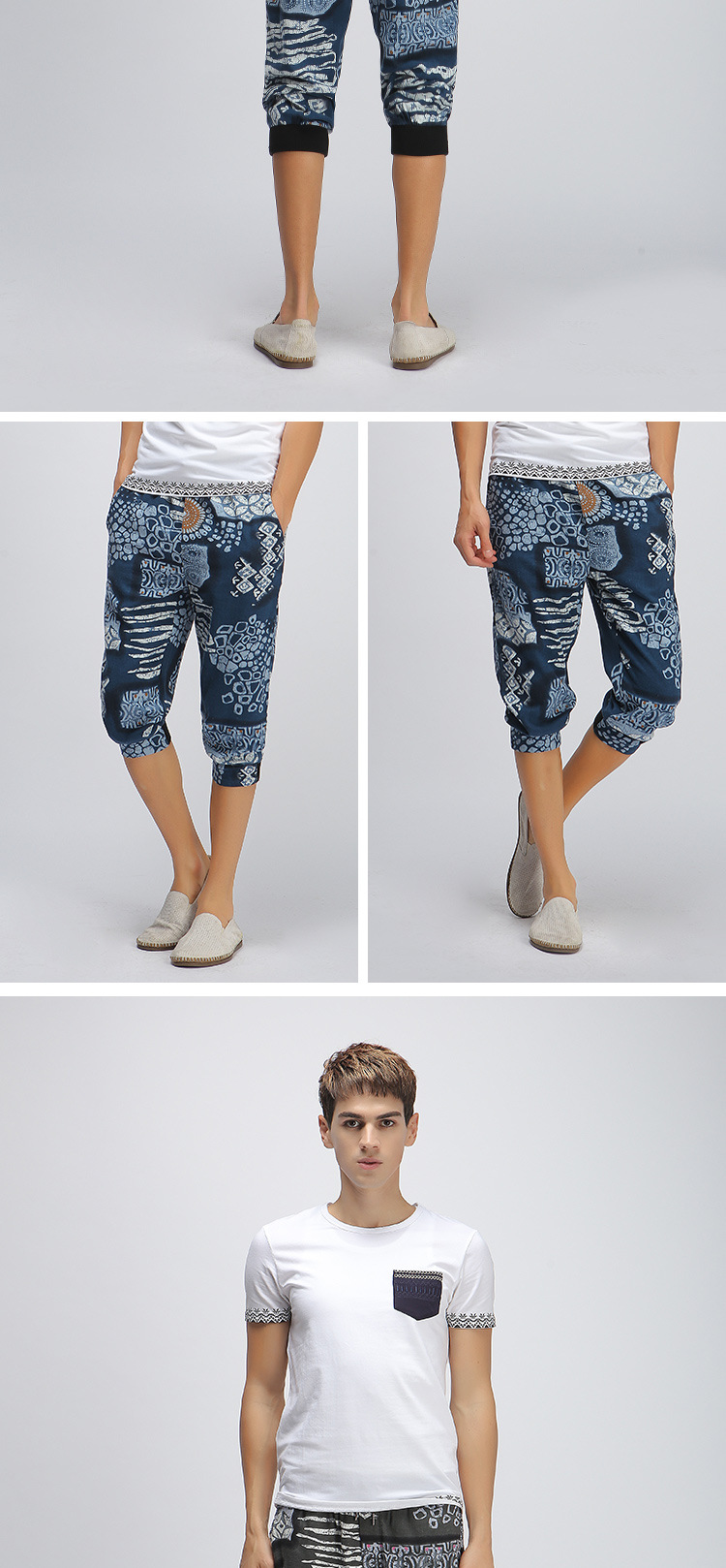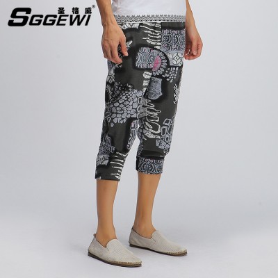 圣格威2015男士運動七分褲亞麻休閑褲 非主流哈倫褲子7分褲潮男褲