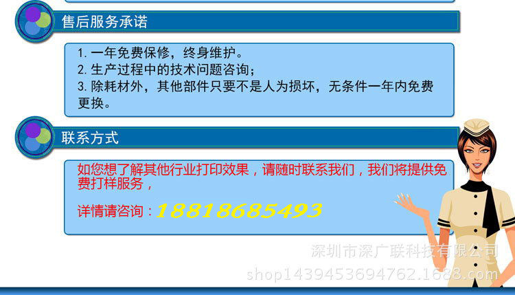 深圳市深廣聯科技有限公司主營UV平板噴繪機,UV平板打印機,UV卷材噴繪打印機,UV平板立體印刷導帶機,平板打印機,同步雙面噴繪機等噴印設備,長期供應配件及耗材廠家,