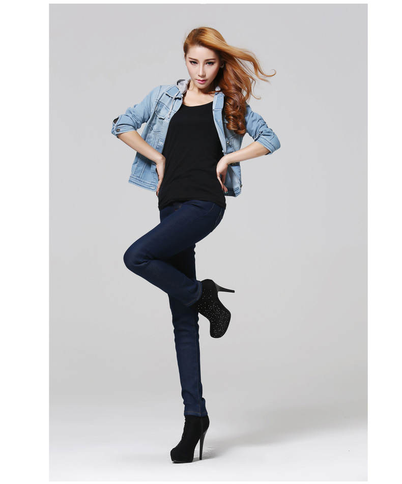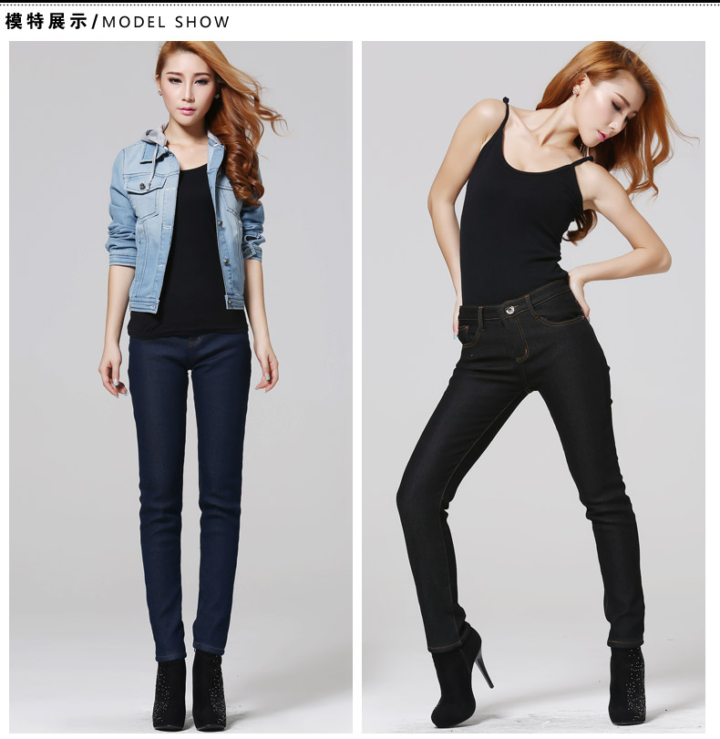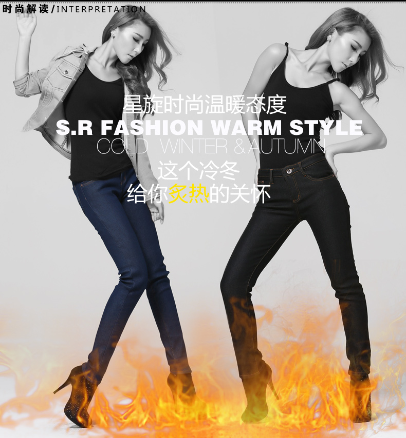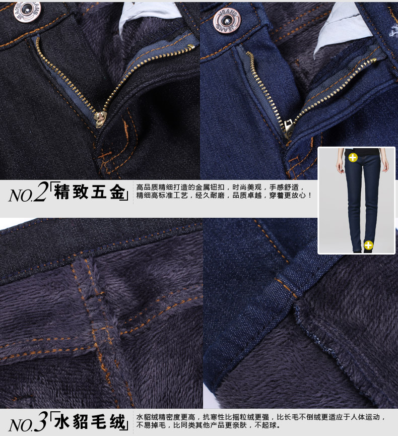 供應星旋加絨牛仔褲女水貂絨加厚保暖防寒