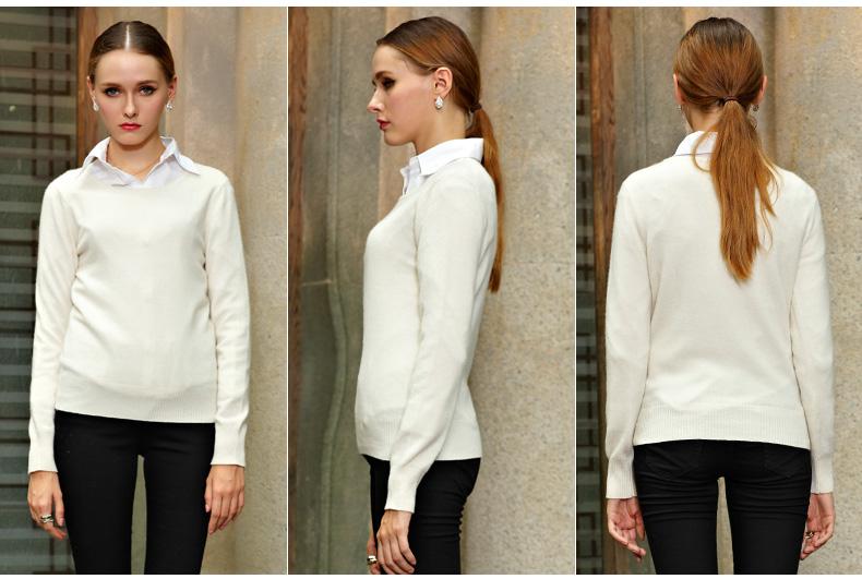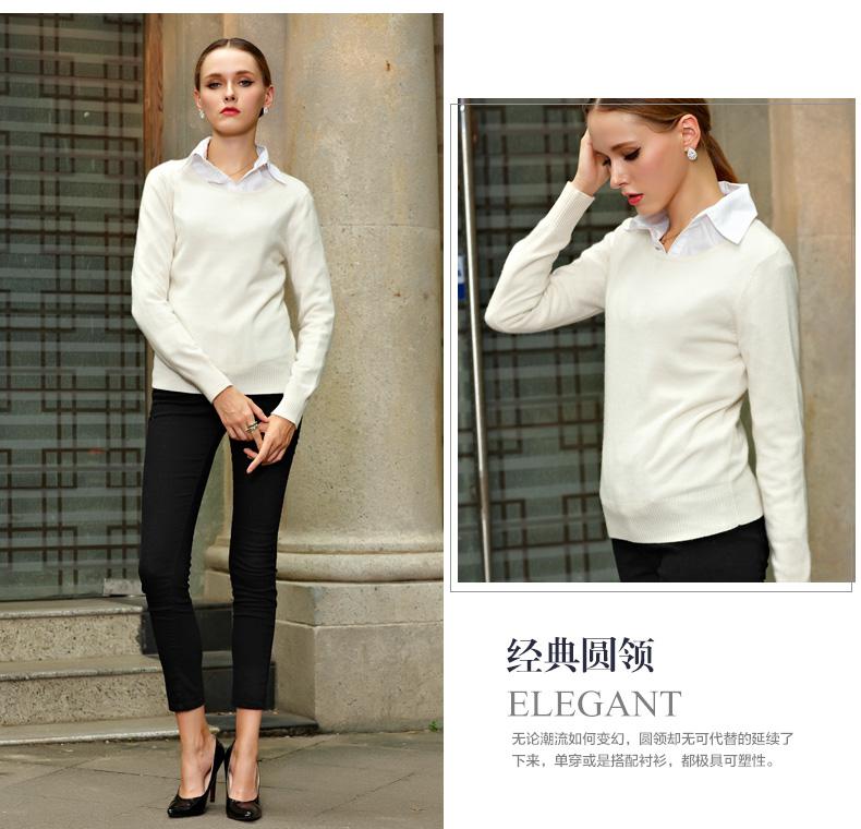 羊絨毛衣定制套頭純羊絨衫薄款女大圓領純色針織打底衣手工縫制