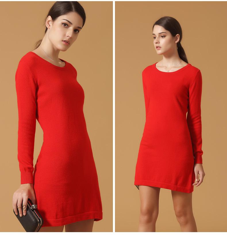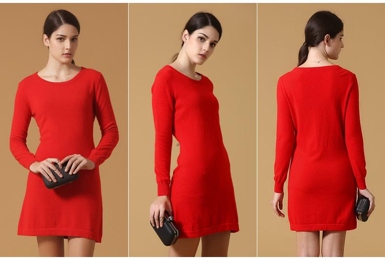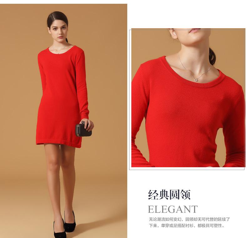 娜荻品牌羊絨連衣裙女中長款長袖秋冬打底套頭針織羊絨衫毛衣