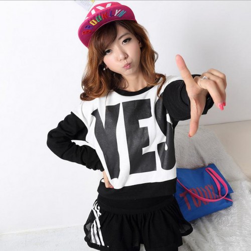2014春季新款韓國YES字母衛衣長袖圓領加絨加厚女式衛衣批發