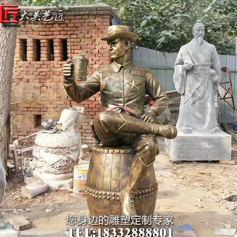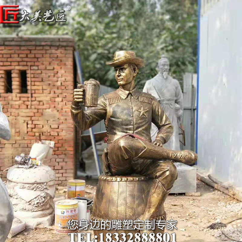 大美藝匠西方人物喝酒雕塑牛仔喝啤酒雕塑玻璃鋼人物廣場園林景觀擺件雕塑