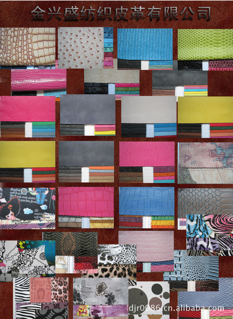1、皮革系列:PU、PVC人造革、噴圖高光PU.PVC皮革、壓花皮革、字母印花皮革、半PU皮革、仿真皮PU皮革、羊紋、石頭紋、龜裂皮、雙色皮料、變色PU皮革、細(xì)紋皮革、荔枝紋PU,PVC、鱷魚(yú)紋皮料、針紋PVC、光膠皮革、開(kāi)邊珠PVC、豹紋料、斑馬紋、壓紋皮革等等。