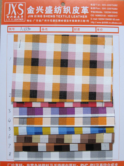 1、皮革系列:PU、PVC人造革、噴圖高光PU.PVC皮革、壓花皮革、字母印花皮革、半PU皮革、仿**PU皮革、羊紋、石頭紋、龜裂皮、雙色皮料、變色PU皮革、細紋皮革、荔枝紋PU,PVC**紋皮料、針紋PVC、光膠皮革、開邊珠PVC、豹紋料、斑馬紋、壓紋皮革等等。