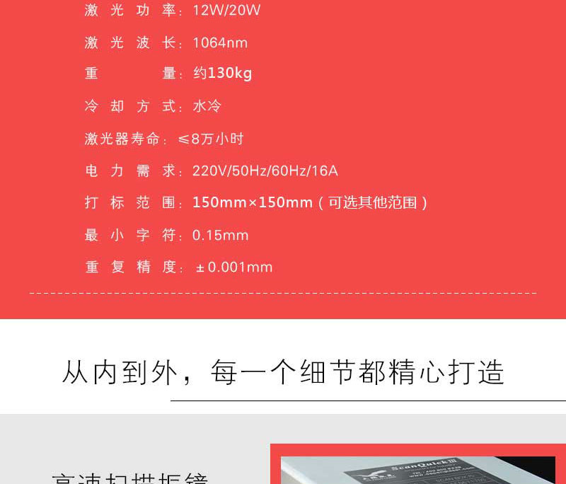 機型特點:產品采用全進口半導體元件端面泵浦,是以新一代激光技術為核心,多項專有技術,其中采用的新腔型技術,減小了熱透鏡效應,確保了激光器的基模輸出,并增加了光輸出的穩定性,激光器具有光束質量好、峰值功率高、性能可靠、結構緊湊、調節方便、成本低、操作維護簡單等特點,尤其適用于激光微加工、激光打標、激光切割等工業制造領域。 產品優勢:光轉換效率高,輸出激光光斑較小,光束質量好,(M<1.2),輸出激光穩定性高,打標效果較易調試,打標線條較細,更適合一些較精細圖文的標記。整機性能穩定,風冷避免了水箱,體積小,功耗低。 LD在連續工作狀態下壽命可達數萬小時,在脈沖工作狀態下脈沖次數可達10次,相比之下,閃光燈在脈沖和連續工作狀態下的壽命分別只有10次和2000小時。 LD泵浦的固體激光器的不穩定度通常可以保持在百分之一以下。閃光燈輸出功率存在很大噪聲和不穩定性,這也導致了輸出功率的不穩定。 應用領域: 數碼產品元器件,精密機械,首飾,衛生潔具,量具刃具,手表,眼鏡,塑膠按鍵,集成電路芯片,電器,電子元件,五金配件,五金工具,移動通訊組件,汽車配件,塑料制品,醫療設備,建設材料,管道和其他高精密產品標識。