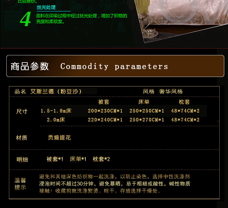 本店床品均為配飾床品,家用的買家請注意與客服進(jìn)行溝通,不接受面料不舒適.不柔軟等理由進(jìn)行退換貨. | |