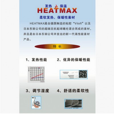 HEATMAX是有德國制造的粘膠“VILOFT"以及日本東麗公司的超細旦抗起球腈綸混合而成的素材,并且是由日本東麗公司開發(fā)出的新一代高性能素材產(chǎn)品。