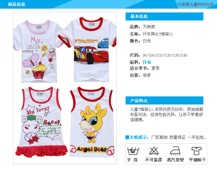 供應(yīng)天使鹿9.9清倉天使鹿純棉卡通背心