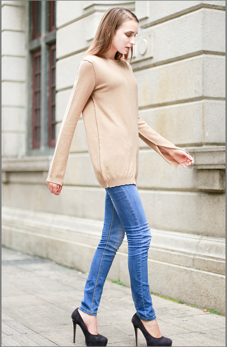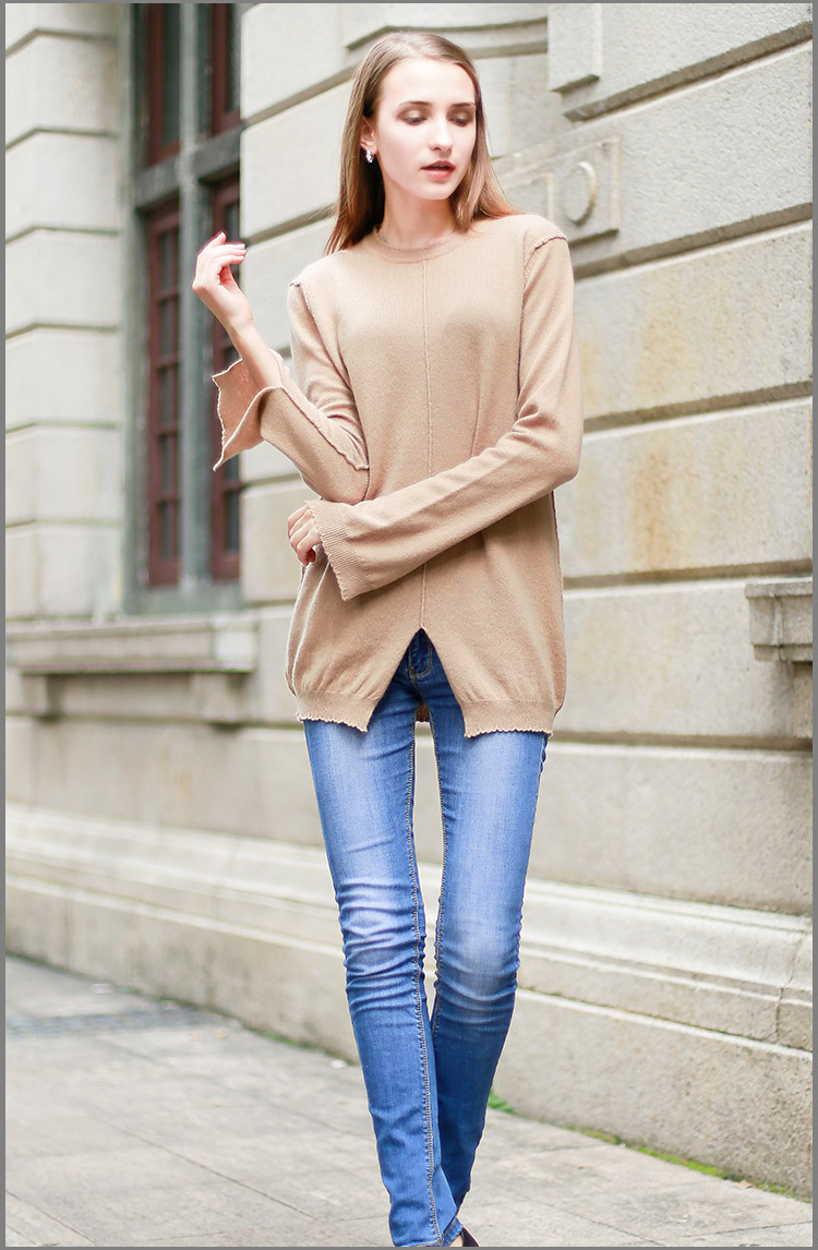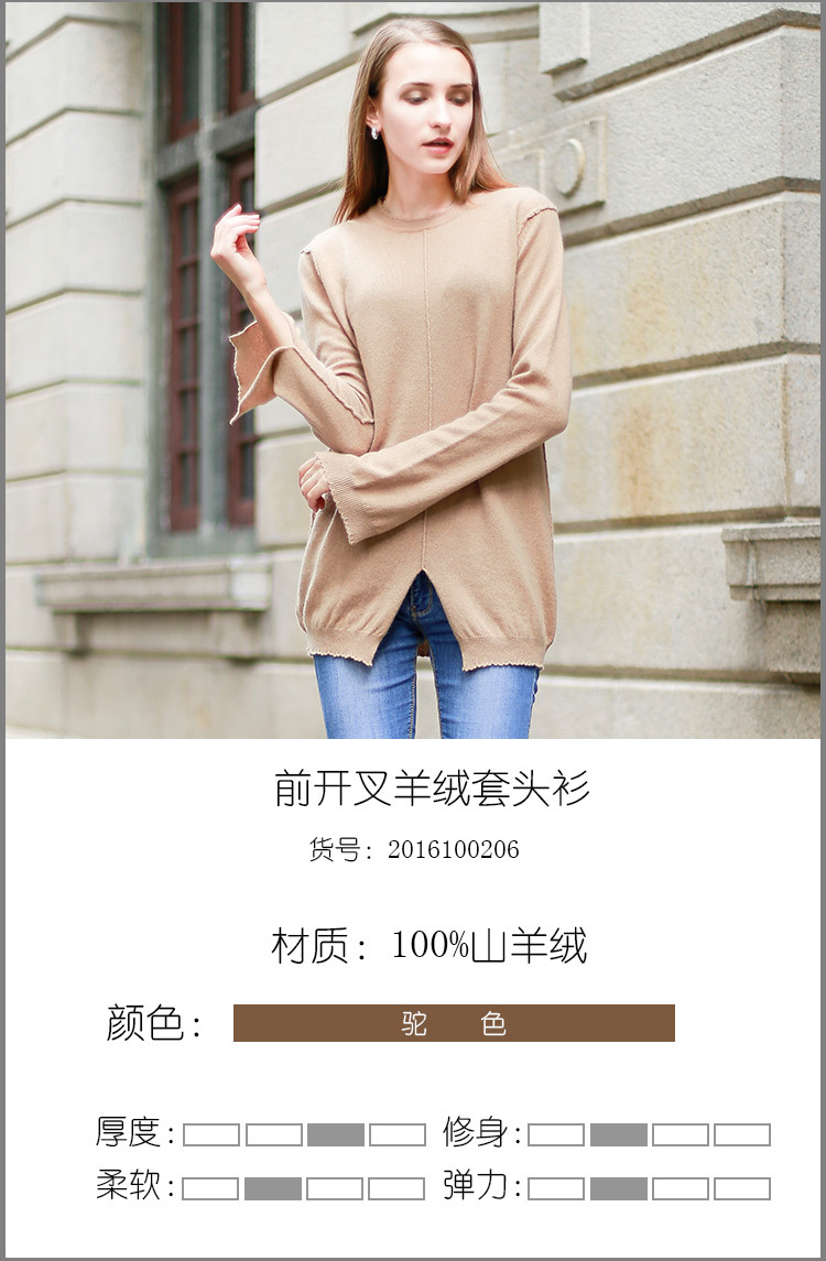 2016年秋冬新款長袖羊絨衫**女裝毛衣女套頭100純山羊絨中長款