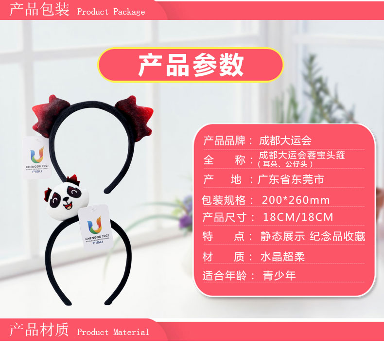 成都大學生運動會吉祥物蓉寶毛絨耳朵頭箍可愛玩偶頭飾