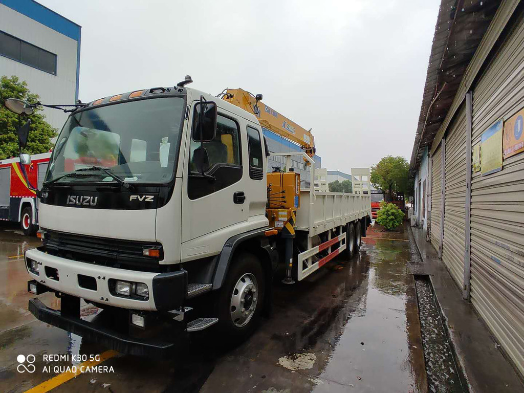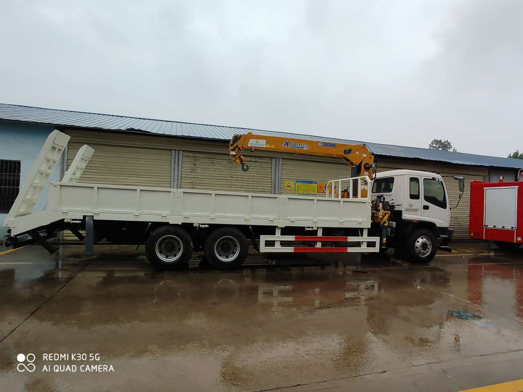 五十鈴后八輪隨車吊,帶液壓翻轉爬梯,一車多用,上裝徐工6.3噸隨車吊。