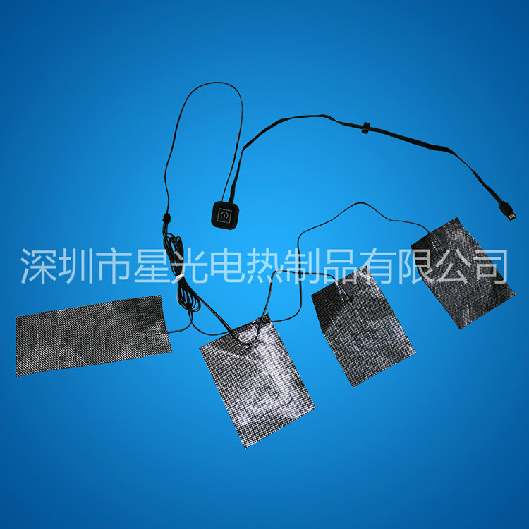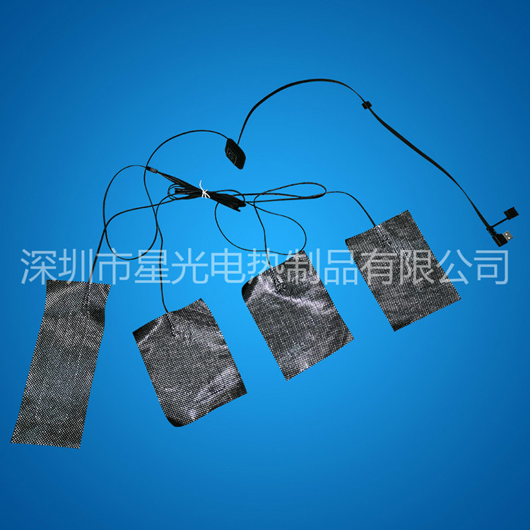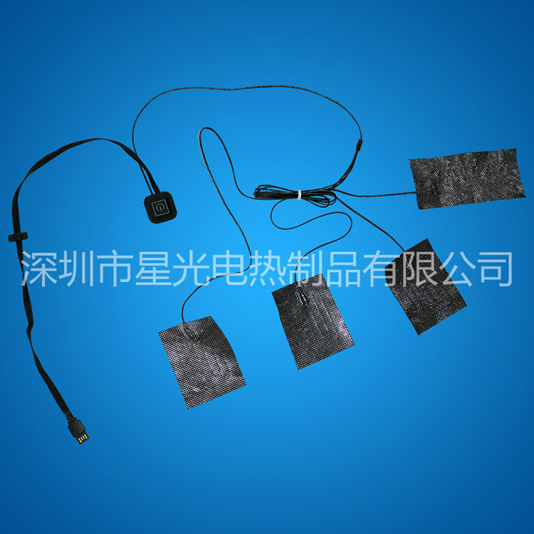 產品設計電壓為低壓5V,四檔可調溫度功能設計,分別分一檔紅色,二檔藍色,三檔綠色,四檔紫色,用戶根據自己的溫度需求,選擇不同的溫度檔位,采用柔性專用布線設計原理,平均使用壽命大于5年,不怕極寒,不怕折,不怕水洗,水洗次數大于50次+以上,