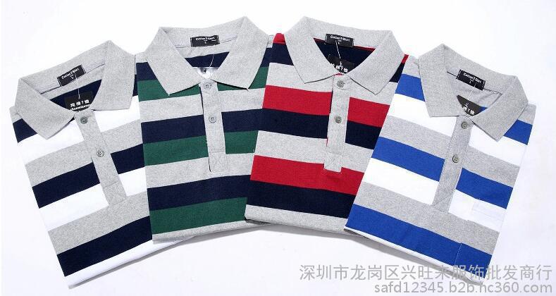 金運服裝廠家中青年男士T恤批發短袖翻領休閑男裝POLO衫大碼條紋男式上衣