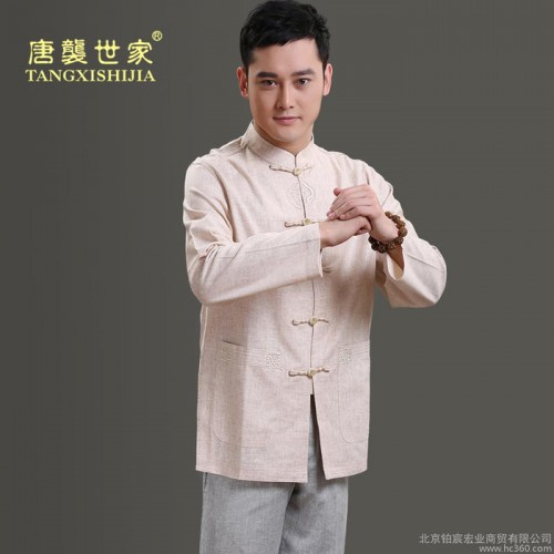 中式老粗布亞麻盤扣襯衫男士唐裝長袖長衫立領修身一字扣
