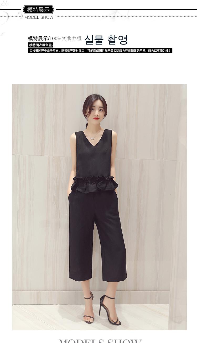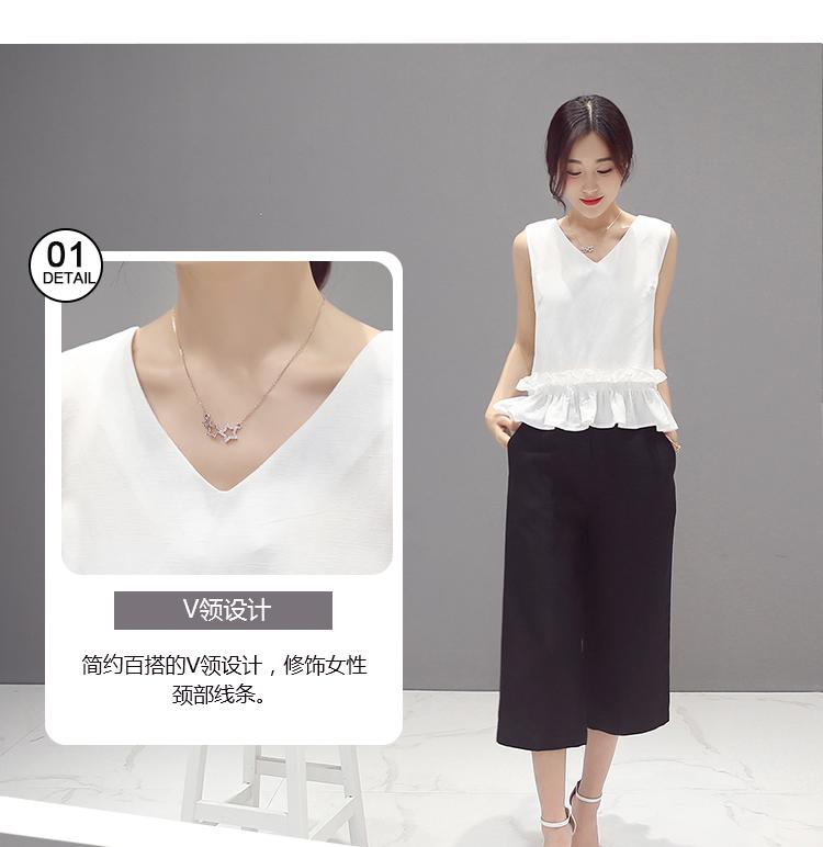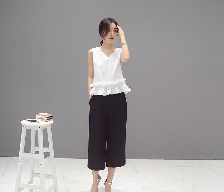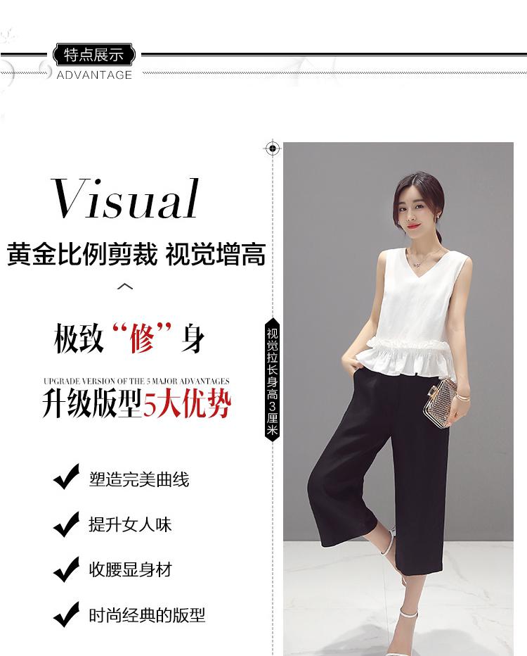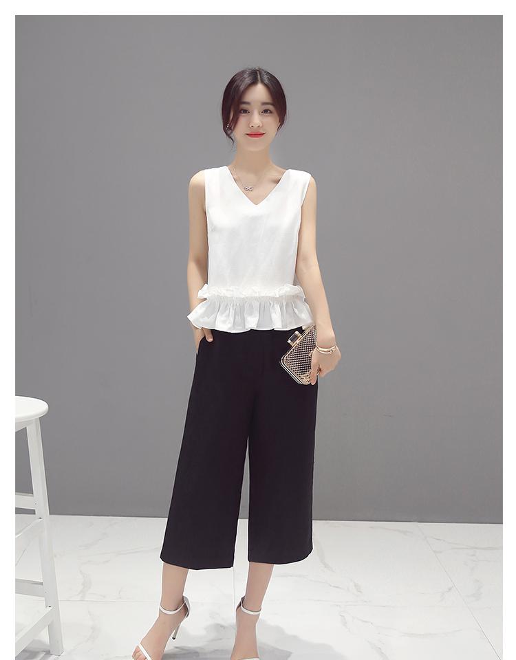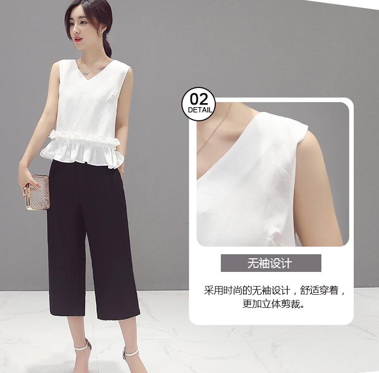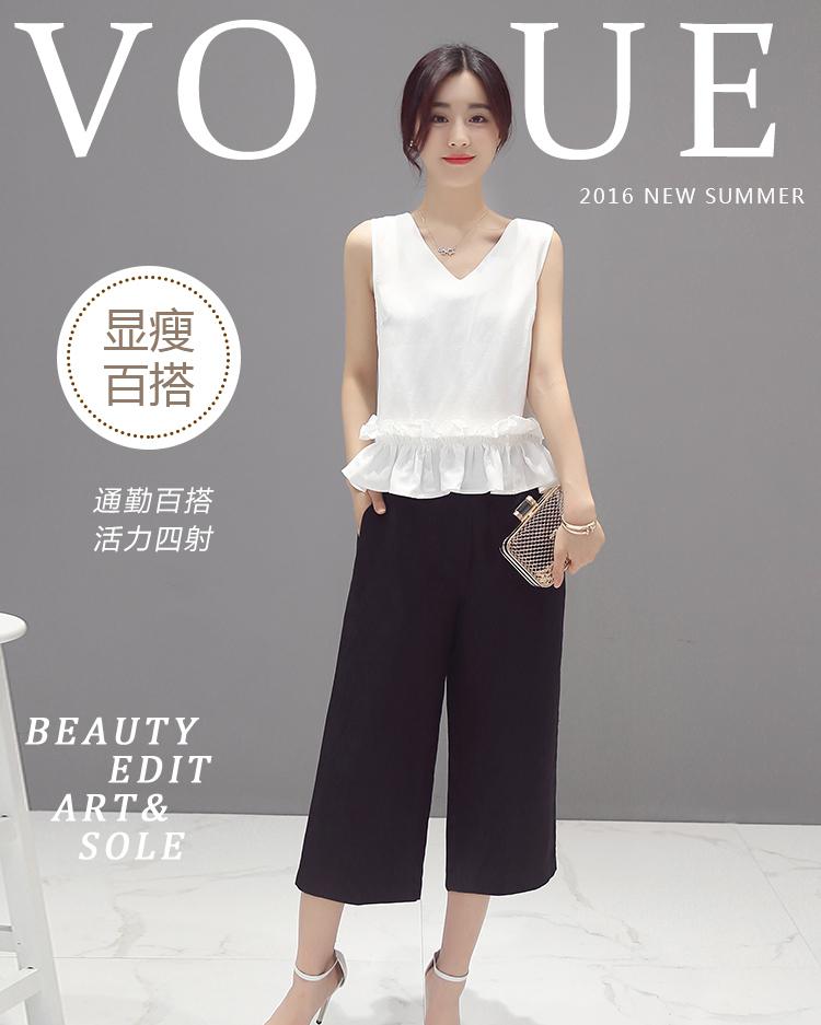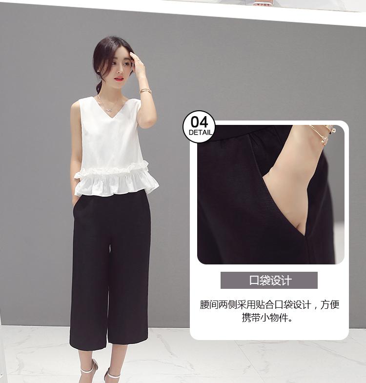 歐洲站2016夏裝新款修身無袖雪紡衫女裝兩件套時尚休閑闊腿褲
