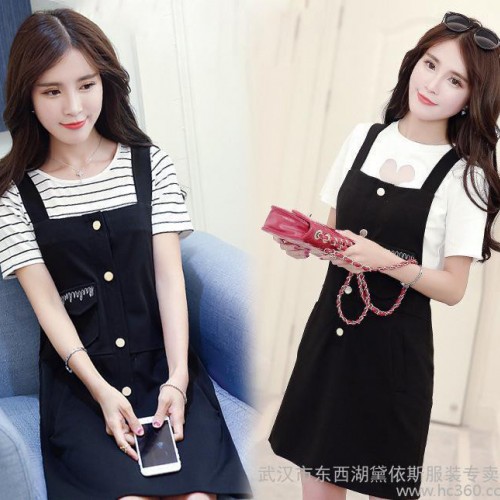 2016夏季潮流新品修身時尚學院風吊帶裙套裝 背帶裙搭棉T中