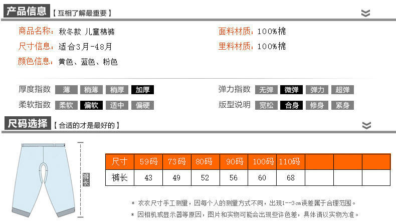 參考身高 | 59cm【適合3-6月】 73cm【適合9-12月】 80cm【適合12-18月】 90cm【適合1-2歲】 100cm【適合2-3歲】 110cm【適合3-4歲】 |