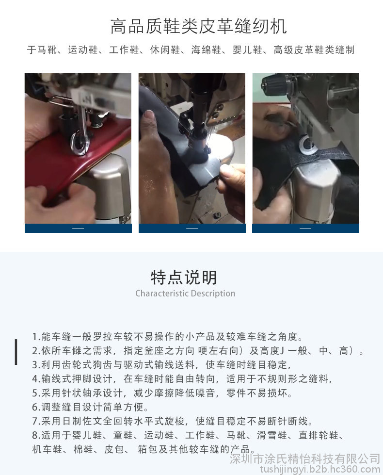 2.適合縫制皮鞋、皮包、手套、帽子等曲狀弧形物品;