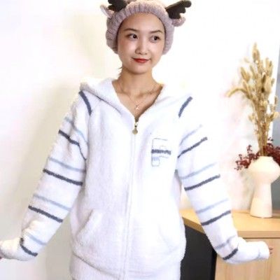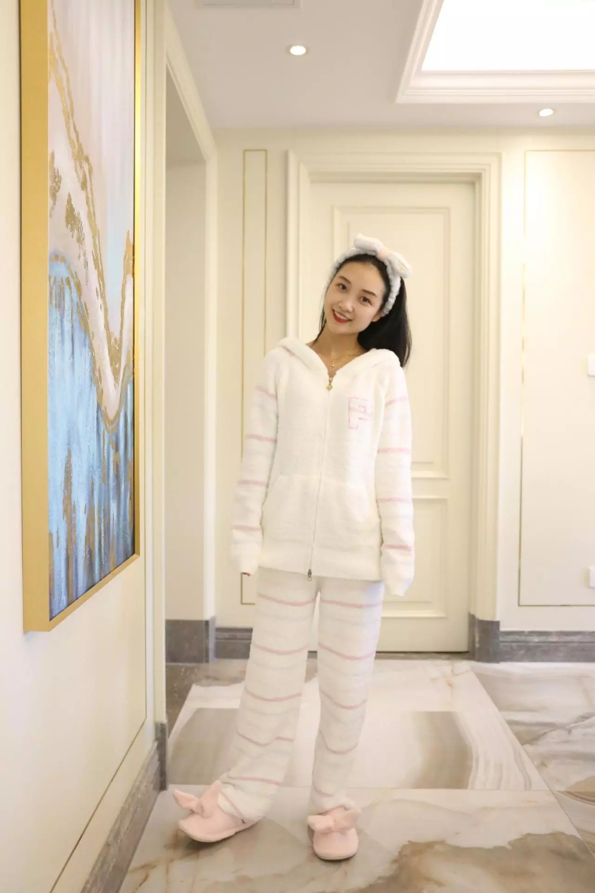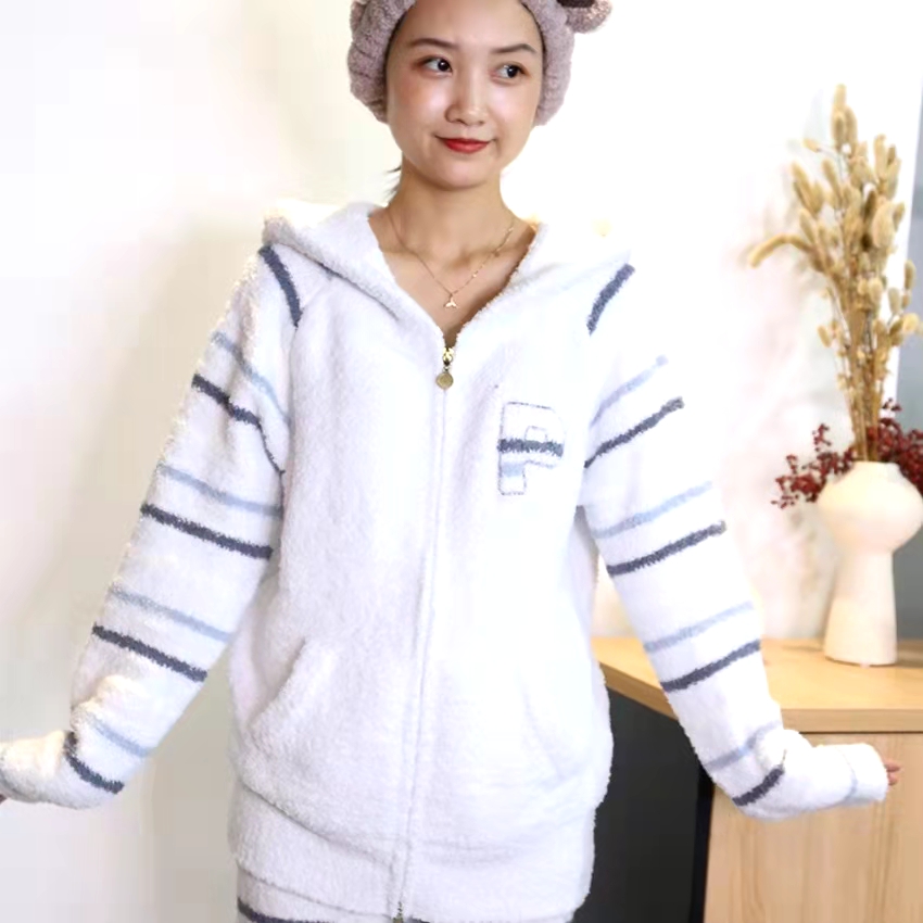 秋冬字母提花拉鏈衫套裝 柔軟舒適半邊絨女士家居服 秋冬家居服