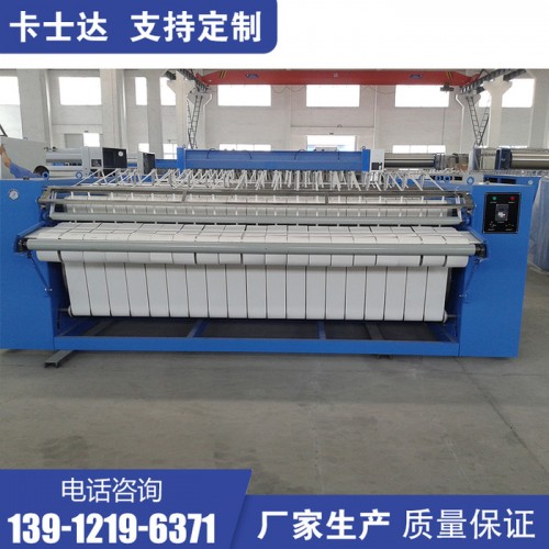 5、熨燙速度可根據織物厚度與蒸汽供應狀態任意調節(無級調速),有單個、兩個或三個滾筒機型,雙滾筒和三滾筒熨平機可實現高速熨平。