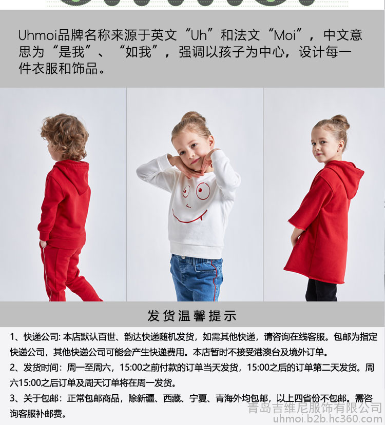 Uhmoi品牌童裝歐美帶帽衛衣男童女童時尚上衣秋款