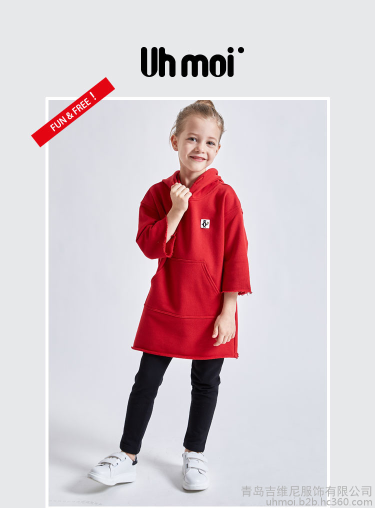 Uhmoi童裝女童帶帽衛衣裙連衣裙休閑上衣春款