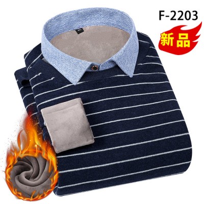 **冬季款男士加絨加厚假兩件條紋保暖襯衫假領韓版休閑襯衣超柔保暖內衣 男式休閑襯衫
