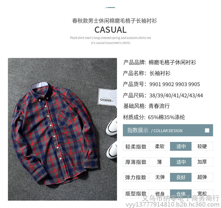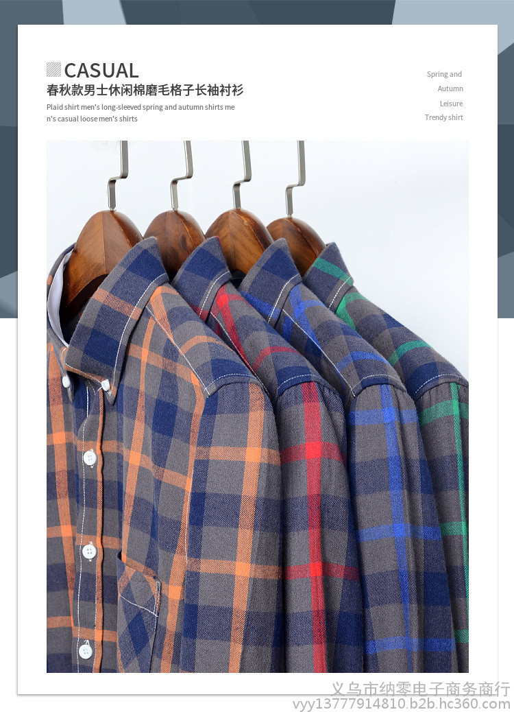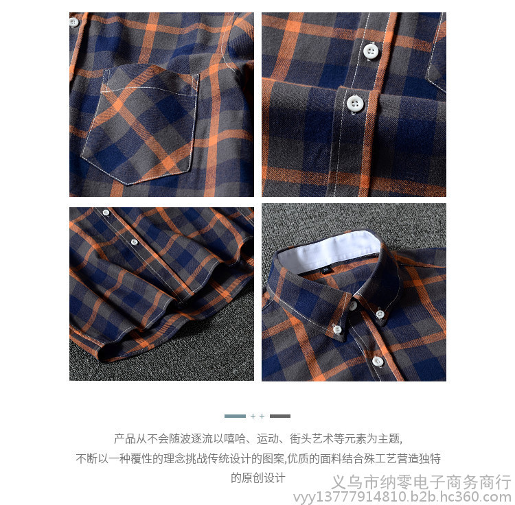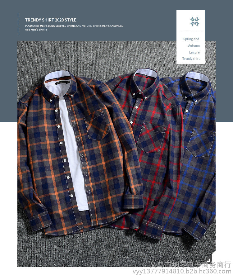 2020春秋季男式免燙韓版襯衫新款立領休閑棉磨毛格子免燙男士長袖襯衣