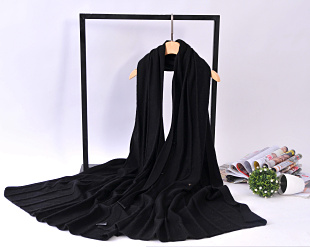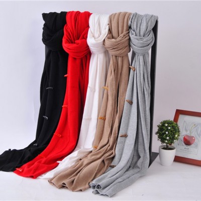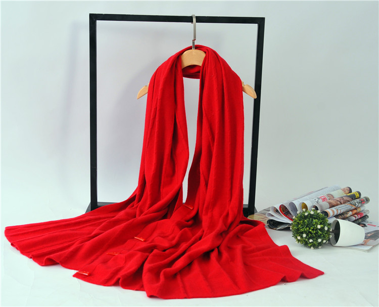 秋冬新款純羊絨百搭帶扣圍巾女麻花超長公主百變純色大披肩