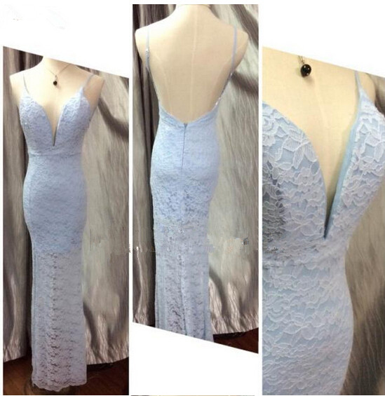 歐美性感V領開叉吊帶蕾絲連衣裙長裙
