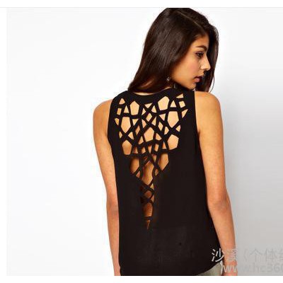直銷 2015歐美性感背后鏤空破洞露背圓領(lǐng)背心T恤衫外