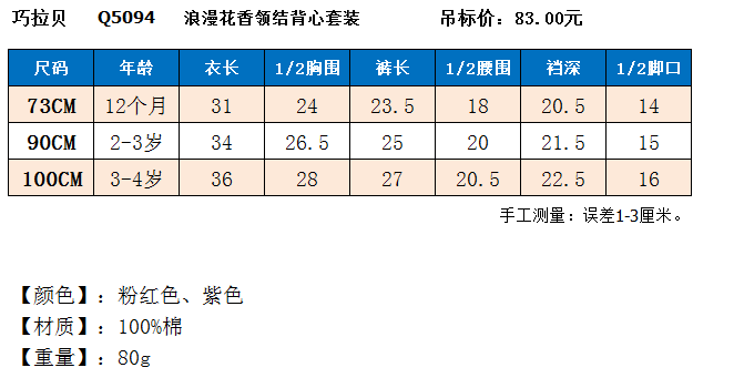 面料:全棉 | 適合身高:73cm-100cm |