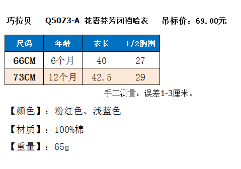 適用年齡:嬰兒裝(0-1歲) | 是否連帽:不連帽 |
