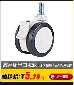 我司主要產品:豪華醫療靜音腳輪、輕型環保腳輪、中型腳輪、重型腳輪、工業腳輪、家具腳輪等各類特殊性腳輪。我們生產的腳輪具有靈活方便、經久耐用、轉動軌道準確、承載能力強,在不同的場合具有耐磨、抗沖擊、抗腐蝕、噪音小等的性能。廣泛用于工業、物流、家具等需要短程不規則移動的領域。