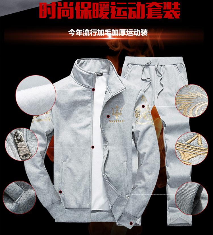 2016春季男士套裝修身立領衛衣韓版青少年休閑跑步運動服開衫