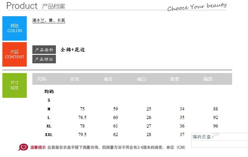 袖長:長袖 | 誤差范圍:2-3公分 |