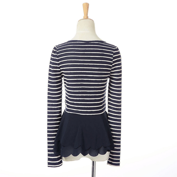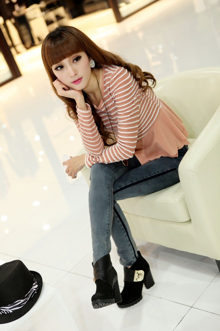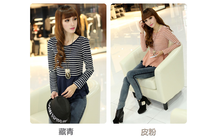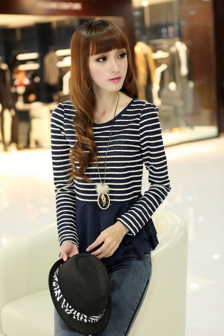 四季青女裝2013春裝新款 韓國條紋雪紡蕾絲衫長袖T恤女式打底衫