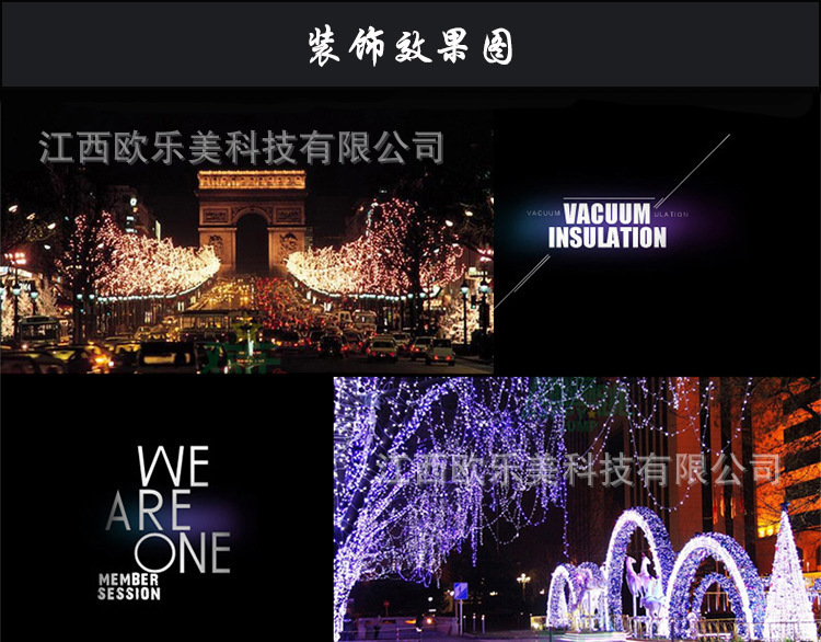 LED燈串是圣誕節,萬圣節,新年,情人節,派對聚會以及婚禮等**的裝飾品,可安裝在圣誕樹、客廳、臥室、樓梯走廊、庭院、花園以及任何你可以想到的地方,為你增添節日的歡快氣氛和浪漫情調。